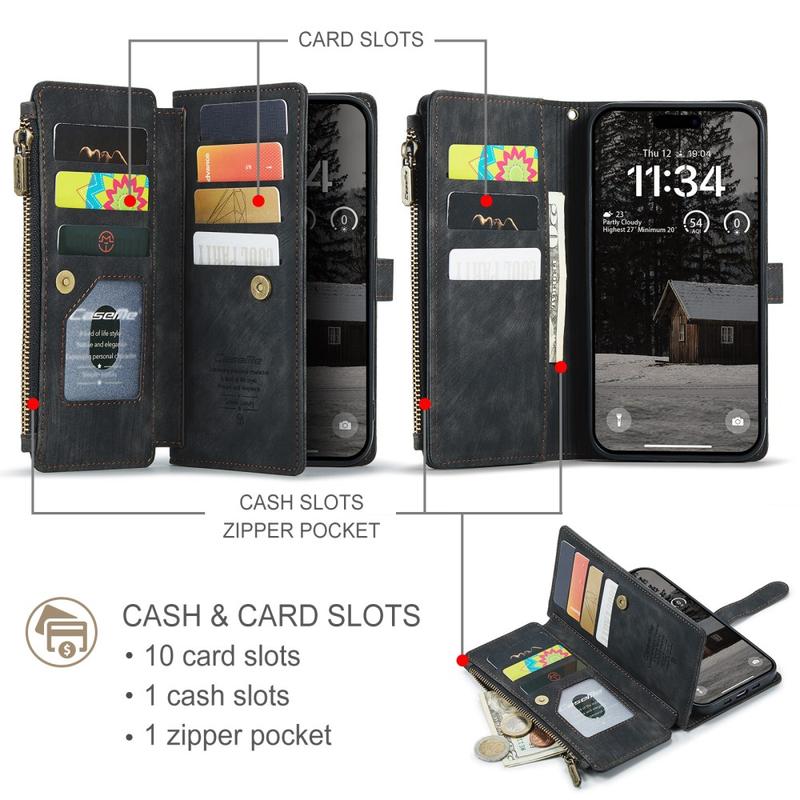 Het Caseme C30 multifunctionele portemonnee hoesje voor iPhone Air biedt uitzonderlijke all-round bescherming en een exclusief, verfijnd ontwerp. Dit elegante hoesje is gemaakt van premium polyurethaan, versterkt met een schokbestendige TPU binnenhoes die je iPhone Air perfect omsluit. Ondertussen is de Caseme C30 portemonnee hoes uitgebreid met tal van kaartsleuven, een groot geldvak binnen, en een ritsvak aan de buitenkant, allemaal beschermd door een veilige magnetische sluiting.