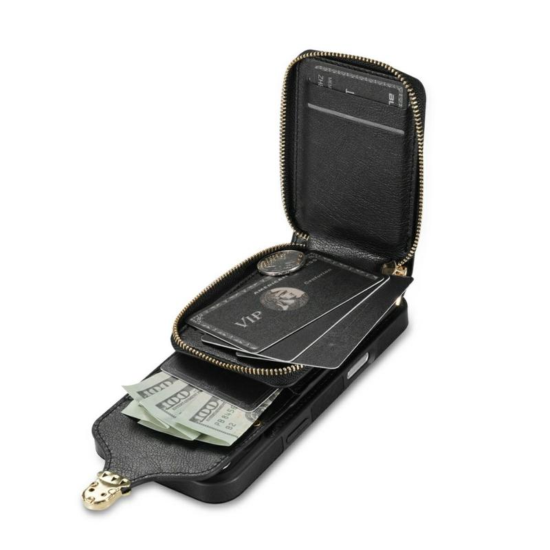 Draag je telefoon, pasjes en geld in één gestroomlijnd accessoire met deze portemonneehoes met rits voor iPhone 17. Gemaakt van duurzaam TPU gecoat in eersteklas polyurethaan leer, biedt hij alledaagse bescherming en vervangt hij de noodzaak van een aparte portemonnee. Perfect voor wie stijl, gemak en veiligheid in één wil.