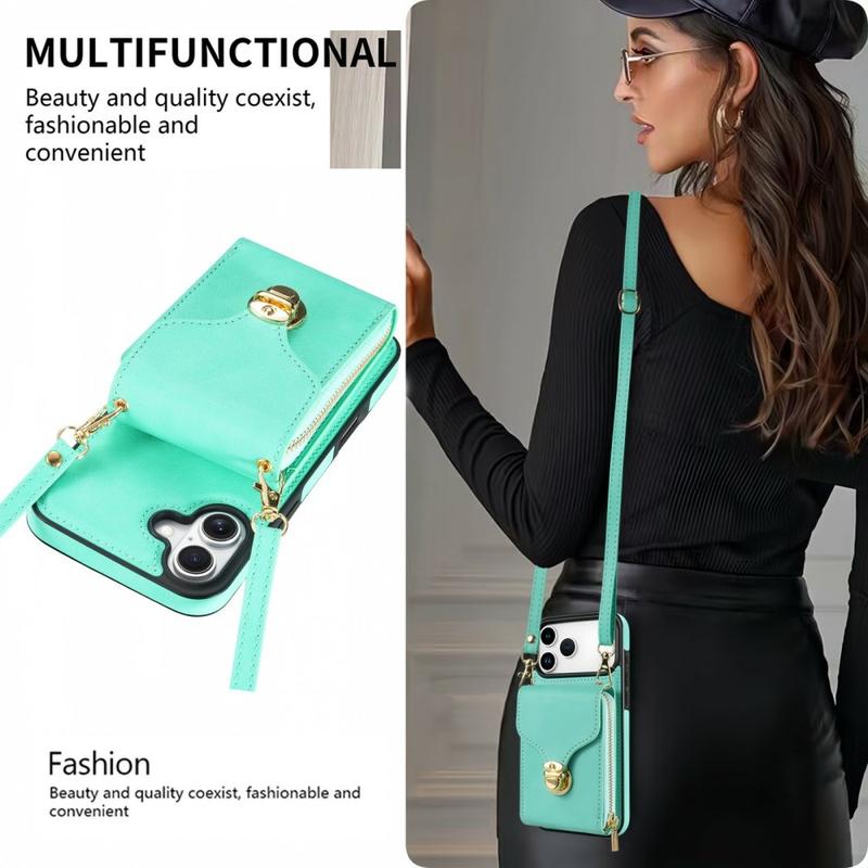 • Alles-in-één beschermhoes van TPU met portefeuille en riem voor iPhone 17