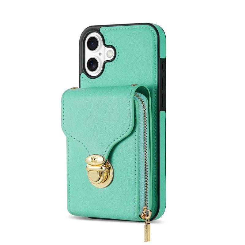 iPhone 17 alles-in-één hoesje met portemonnee en riem - Mint