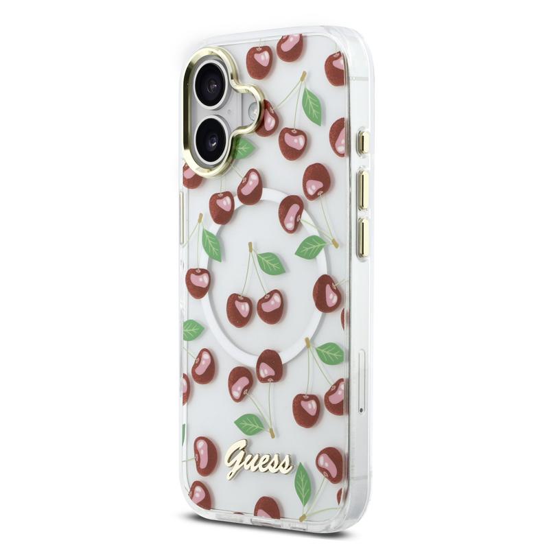 Guess IML Glitter Cherry MagSafe hybride hoesje voor iPhone 17 - Beschermende achterkant van PC en TPU