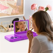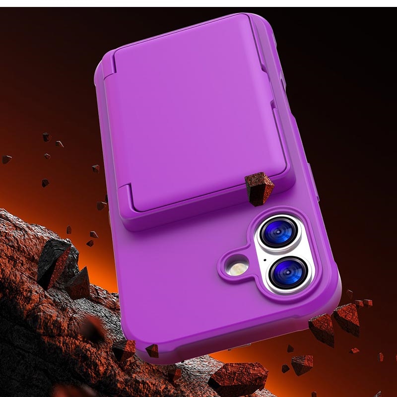 iPhone 17 Hybride Hoesje met Verborgen Spiegel & Kaartsleuf - Paars