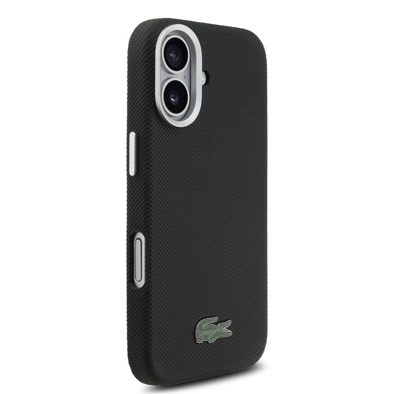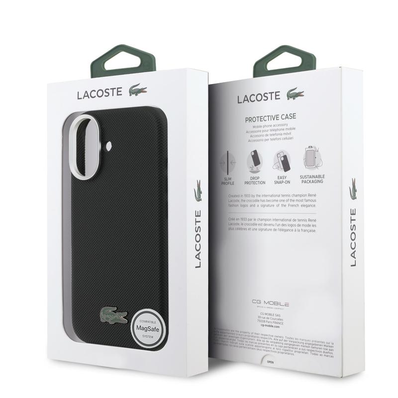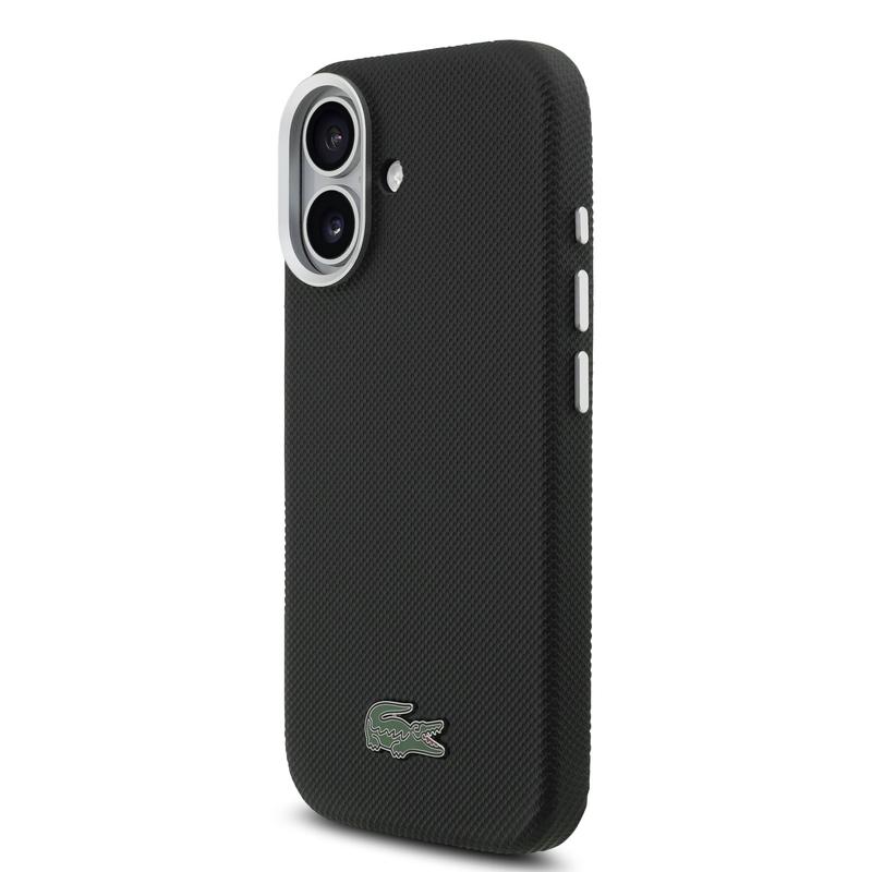 iPhone 17 Lacoste Iconic Petit Pique Metal Logo-hoesje - compatibel met MagSafe - zwart