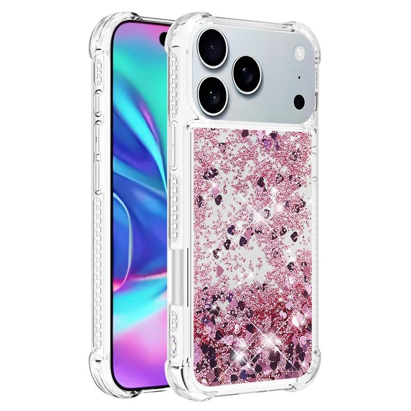 iPhone 17 Pro Max Glitter TPU Quicksand hoesje - Roze gouden harten