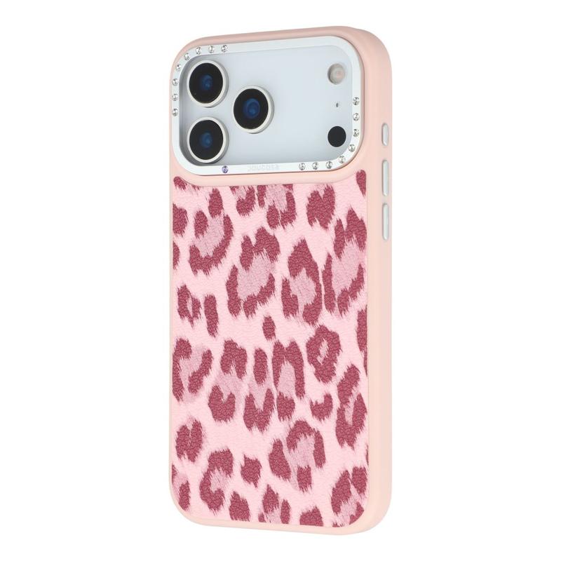 Jaucase magnetische hybride hoesje met luipaardprint voor iPhone 17 Pro Max - PU + TPU + PC met Strass Lensframe