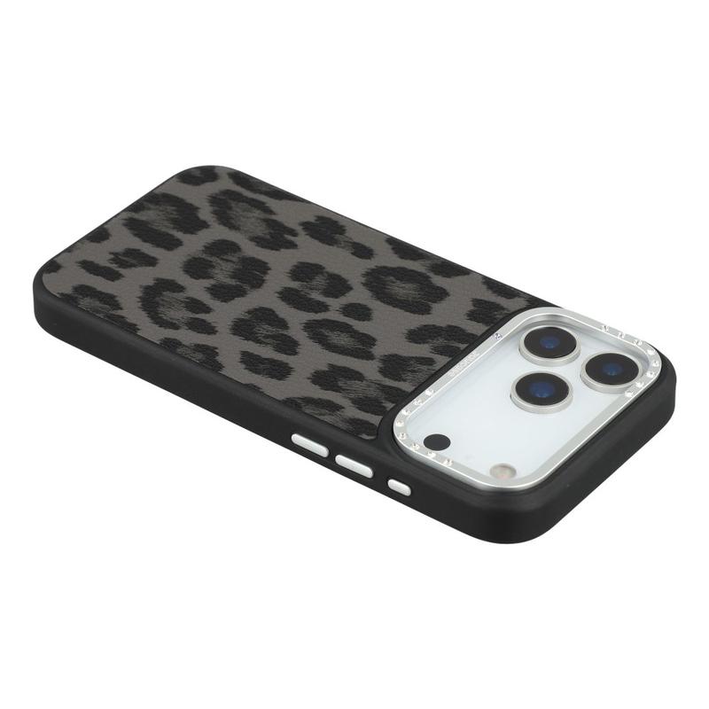 Jaucase magnetische hybride hoesje met luipaardprint voor iPhone 17 Pro - PU + TPU + PC met Strass- Lensframe