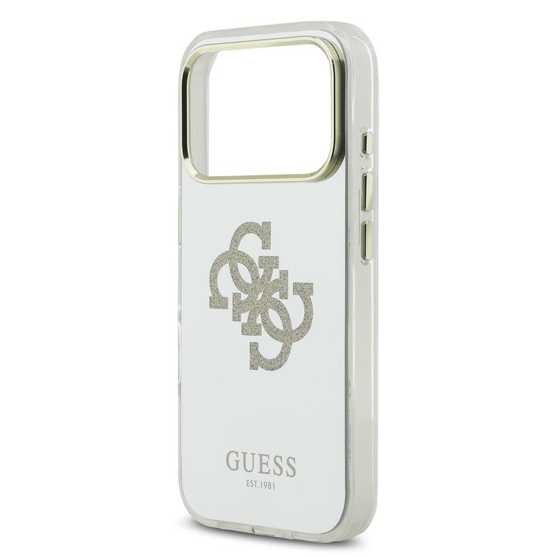 Guess Mirror 4G Glitter Logo Hybride Hoesje voor iPhone 17 Pro - MagSafe Compatibel PC/TPU Achtercover met Spiegelafwerking