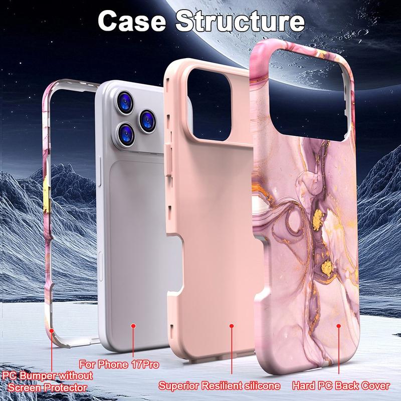 iPhone 17 Pro Luxe Marmer Hybride Hoesje - Stijlvolle PC en TPU Schokbestendige Telefoonhoes met Camerabescherming