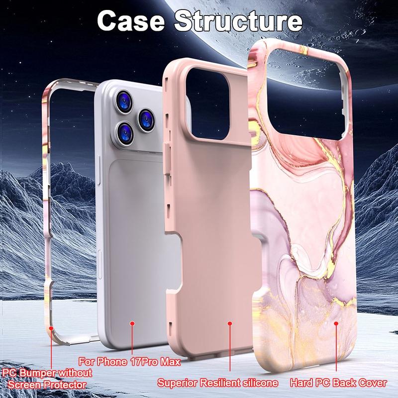 • iPhone 17 Pro Max Luxe Marmer Hybride Hoesje - Stijlvolle PC en TPU Schokbestendige Telefoonhoes met Camerabescherming
