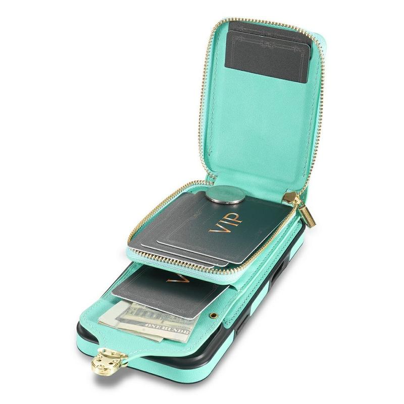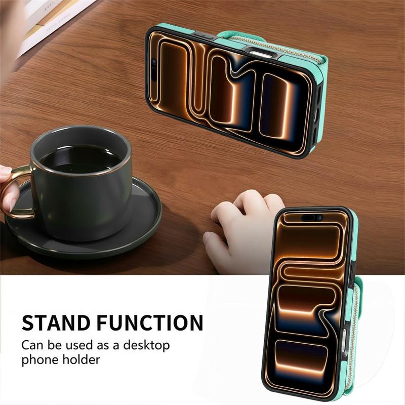 Neem je telefoon, pasjes en geld mee in één gestroomlijnd accessoire met deze portemonneehoes met rits voor iPhone 17 Pro Max. Gemaakt van duurzaam TPU gecoat in eersteklas polyurethaan leer, biedt hij alledaagse bescherming en vervangt hij de noodzaak van een aparte portemonnee. Perfect voor wie stijl, gemak en veiligheid in één wil.