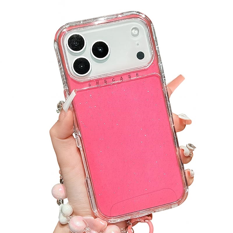 Geef je telefoon extra glans en houd hem veilig met deze glitter anti-valhoes voor de iPhone 17 Pro Max. De roze glitterafwerking tovert je toestel om in een modieus accessoire, terwijl de duurzame constructie zorgt voor betrouwbare bescherming tegen vallen en krassen.