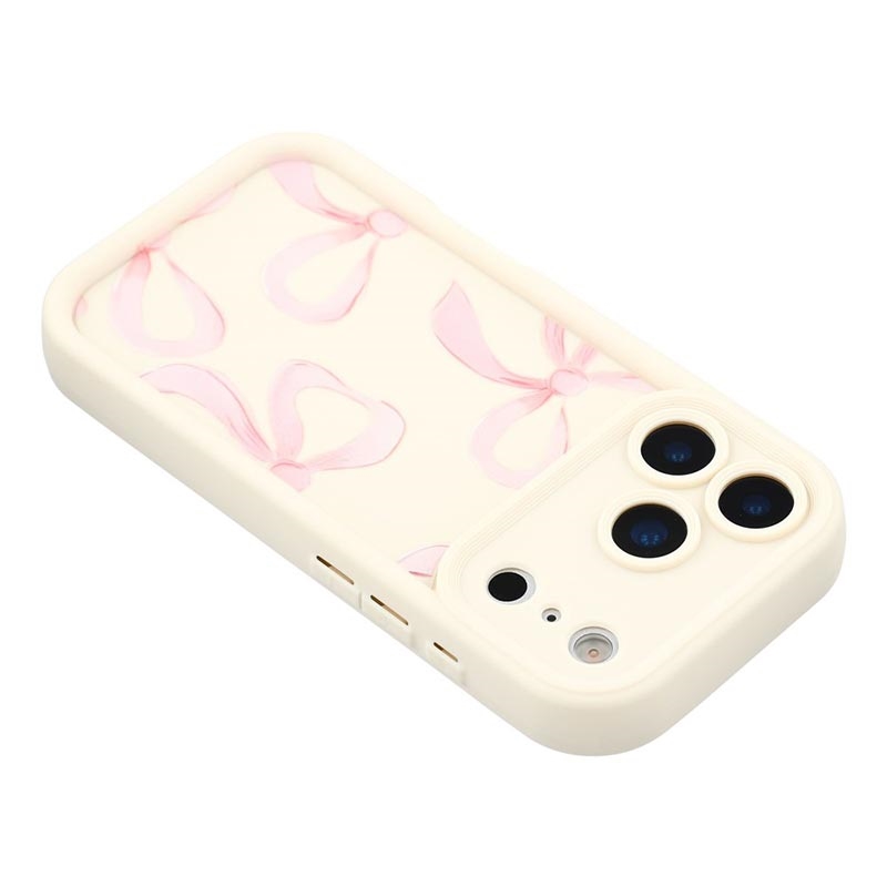 iPhone 17 Pro Stijlvol Schokbestendig TPU Hoesje met Opstaande Randen - Wit / Grote strik