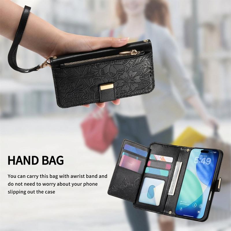 Houd je essentials georganiseerd terwijl je elegantie toevoegt aan je iPhone 17 Pro Max met deze portemonneehoes met bloemenbladmotief. Ontworpen met meerdere kaartsleuven, een veilig ritsvak en een afneembare polsband, is het de perfecte mix van functionaliteit en stijl. Hij is gemaakt van duurzaam TPU en polyurethaan, biedt betrouwbare bescherming en is tegelijkertijd een modieuze alles-in-één portemonnee.