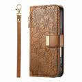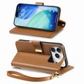 Portemonnee Hoesje met bloemen en bladmotief met Ritszakje & Polsbandje voor iPhone 17 Pro Max