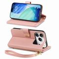 Portemonnee Hoesje met bloemen en bladmotief met Ritszakje & Polsbandje voor iPhone 17 Pro Max