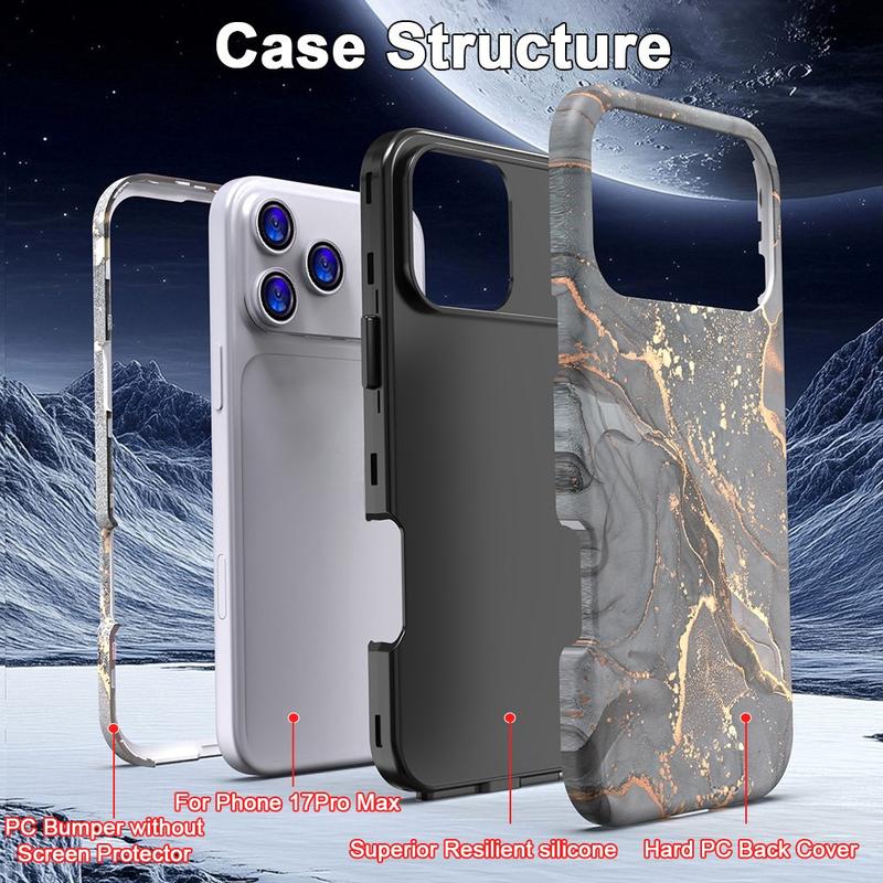 iPhone 17 Pro Max Luxe Marmer Hybride Hoesje - Stijlvolle PC en TPU Schokbestendige Telefoonhoes met Camerabescherming