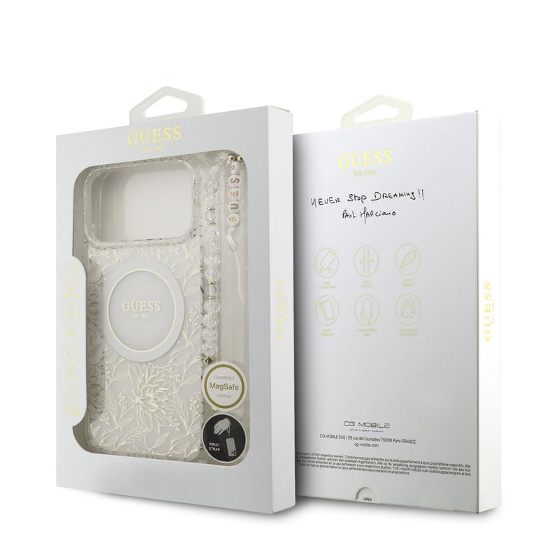 Guess IML Flowers Allover Electro Hoesje met Parelband voor iPhone 17 Pro Max - MagSafe-compatibel