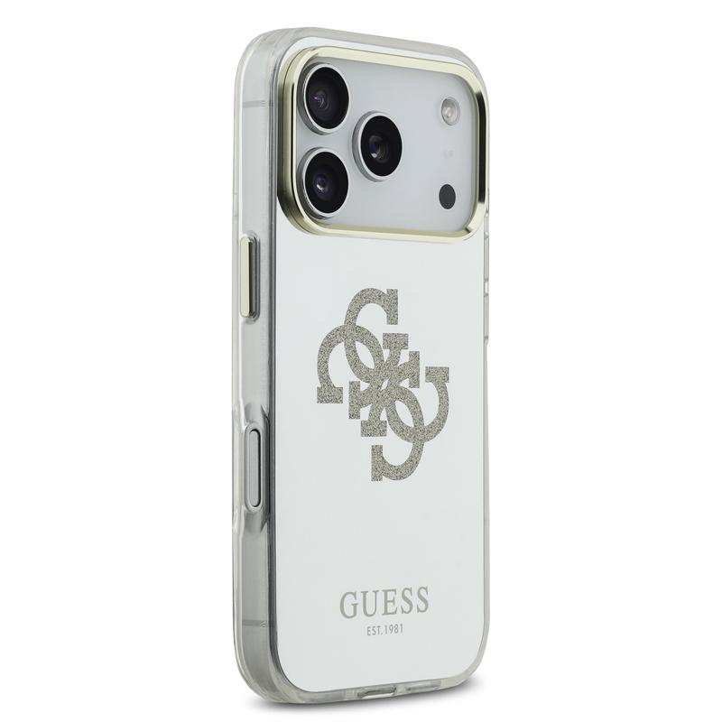 Guess Mirror 4G Glitter Logo Hybride Hoesje voor iPhone 17 Pro Max - MagSafe Compatibel PC/TPU Achtercover met Spiegelafwerking