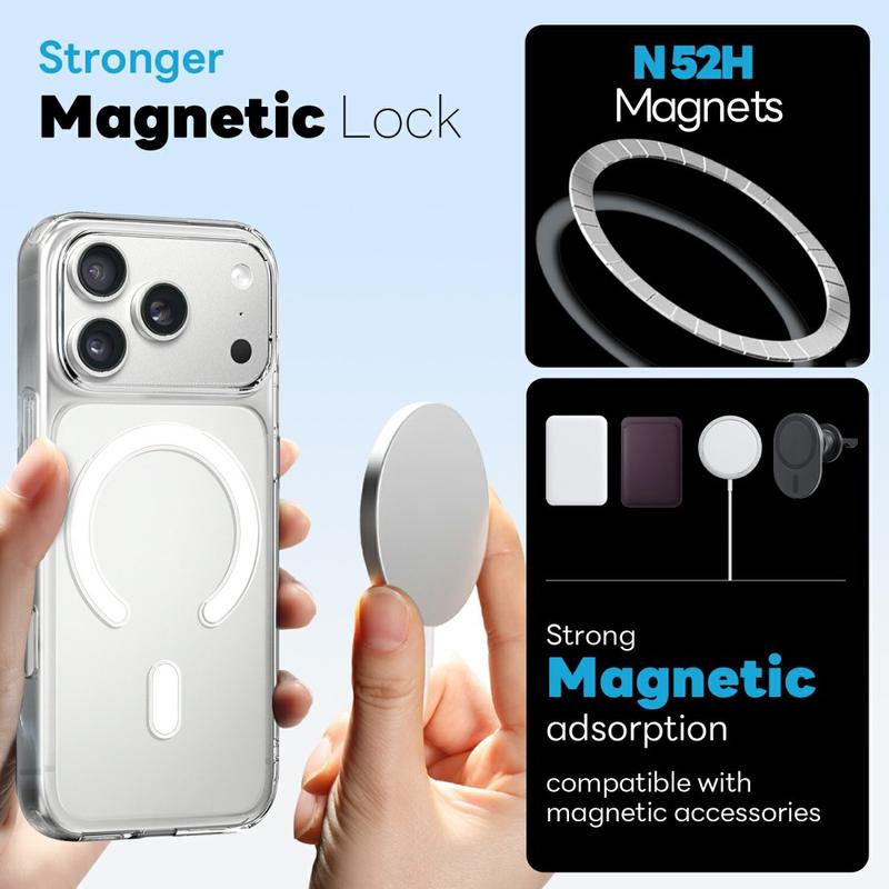 MagSafe-compatibele hoesjes maken gebruik van een precies uitgelijnde ring van 38 magneten met hoge sterkte, die zorgen voor sneller en stabieler draadloos opladen, zelfs bij gebruik van dikkere beschermlagen.
