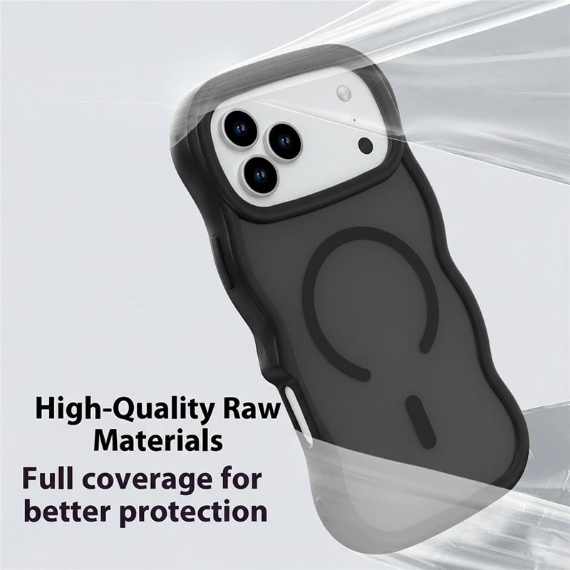 Bescherm je iPhone 17 Pro Max in stijl met de MagSafe-compatibele Wave Edge Case, een perfecte balans tussen elegantie en functionaliteit. Deze hoes is gemaakt van een combinatie van zacht TPU en duurzaam PC-materiaal en biedt betrouwbare bescherming tegen vallen, stoten en krassen, terwijl het slanke en lichte profiel behouden blijft. Het moderne golf-textuur ontwerp verbetert de grip en geeft je telefoon een unieke esthetiek, terwijl de gladde skin-touch afwerking zorgt voor een luxe gevoel in de hand.