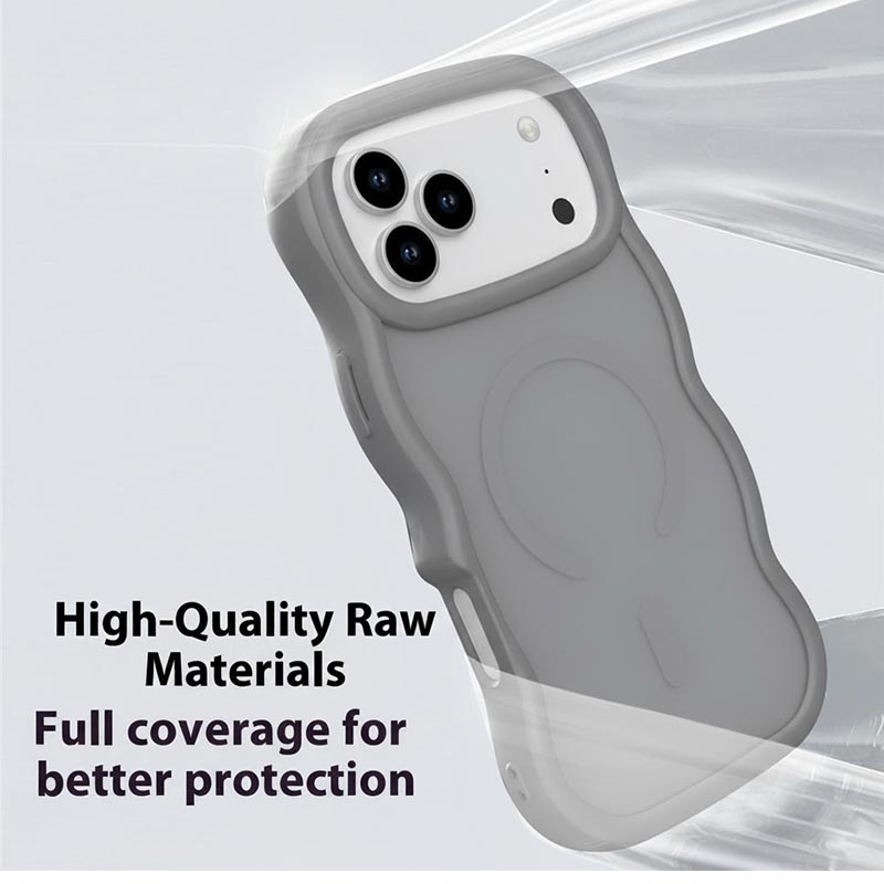Bescherm je iPhone 17 Pro Max in stijl met de MagSafe-compatibele Wave Edge Case, een perfecte balans tussen elegantie en functionaliteit. Deze hoes is gemaakt van een combinatie van zacht TPU en duurzaam PC-materiaal en biedt betrouwbare bescherming tegen vallen, stoten en krassen, terwijl het slanke en lichte profiel behouden blijft. Het moderne golf-textuur ontwerp verbetert de grip en geeft je telefoon een unieke esthetiek, terwijl de gladde skin-touch afwerking zorgt voor een luxe gevoel in de hand.