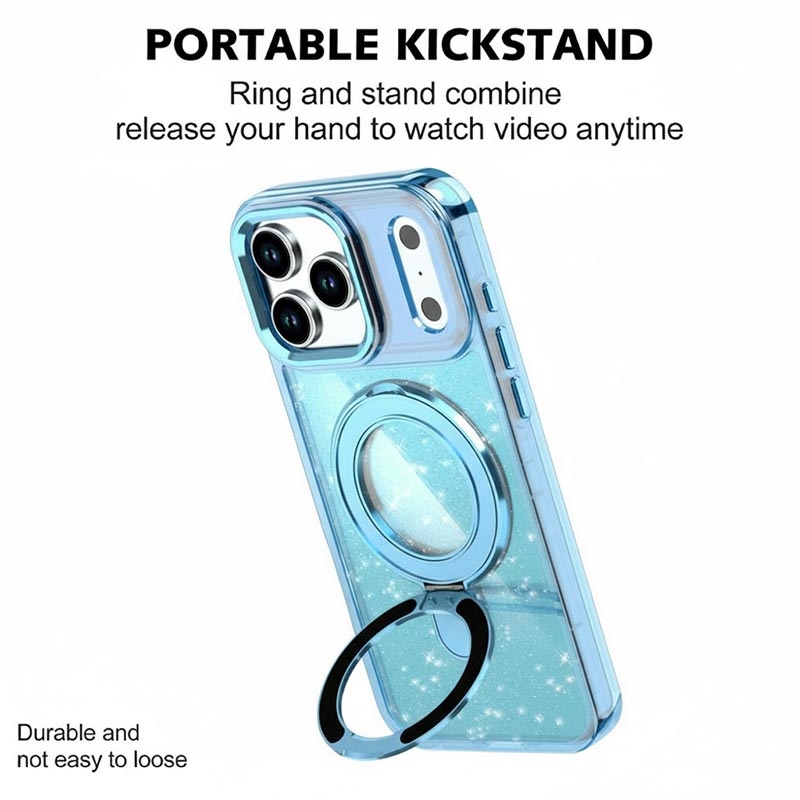 Breng stijl en bescherming samen met de iPhone 17 Pro glittercase, die elegante schittering combineert met betrouwbare duurzaamheid voor elke dag. Gemaakt van hoogwaardige materialen en uitgerust met een ingebouwde kickstand met metalen ring, houdt deze hoes je telefoon de hele dag veilig, functioneel en modieus.