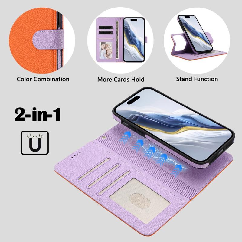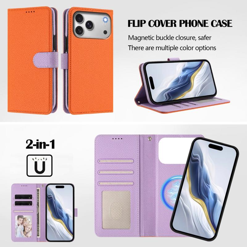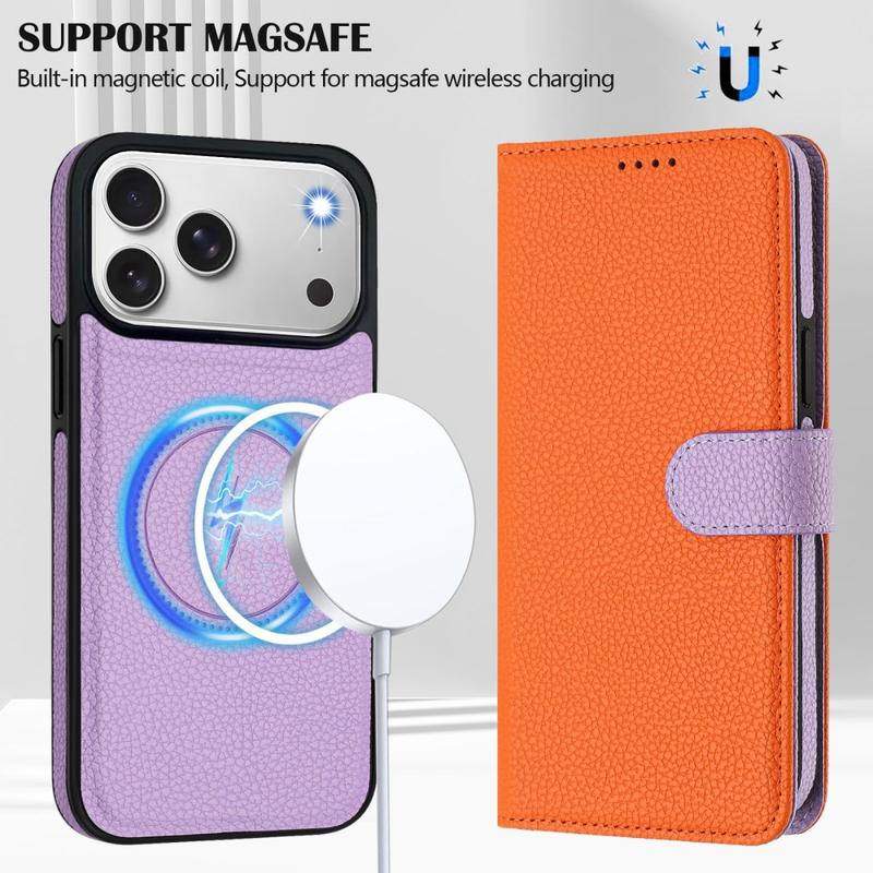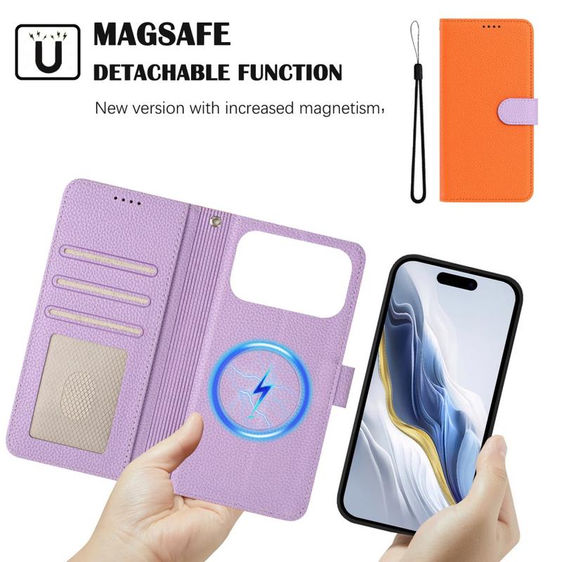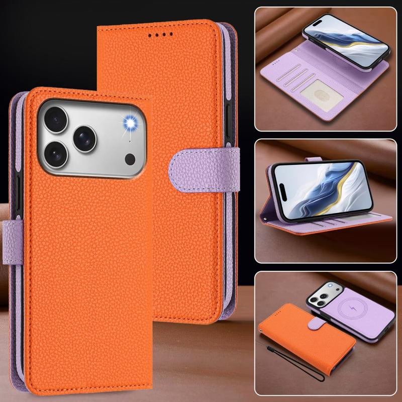 iPhone 17 Pro Afneembare Portemonnee Hoesje met MagSafe, RFID-bescherming en handriem - Oranje / Paars
