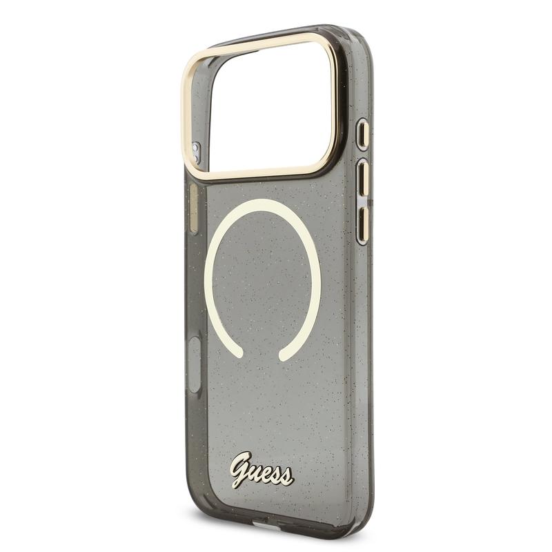 • Guess IML Glitter Script Riem MagSafe-hoesje voor iPhone 17 Pro Max - Glitter achterkant met polsbandje, PC+TPU-bescherming, compatibel met MagSafe