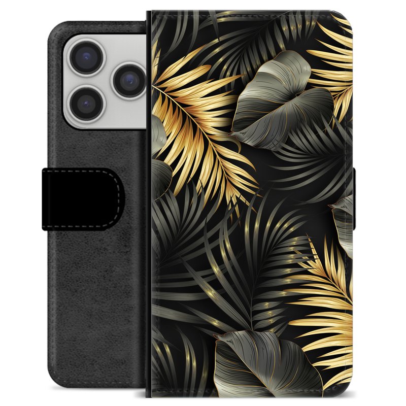 iPhone 17 Pro Premium Portemonnee Hoesje - Gouden Bladeren