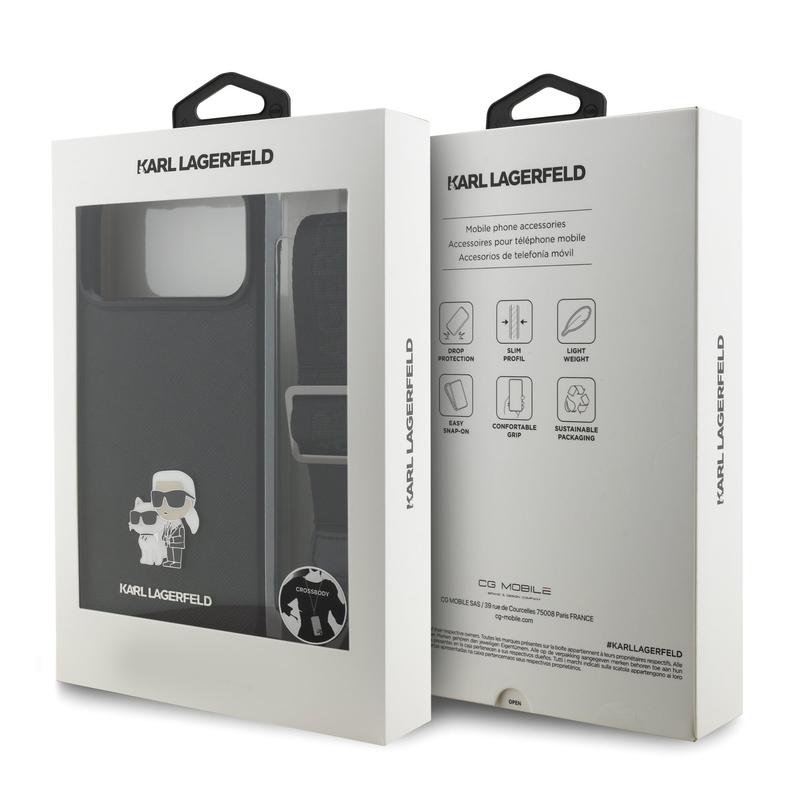 - Karl Lagerfeld Saffiano Crossbody Metal Karl & Choupette hoesje voor de iPhone 17 Pro Max