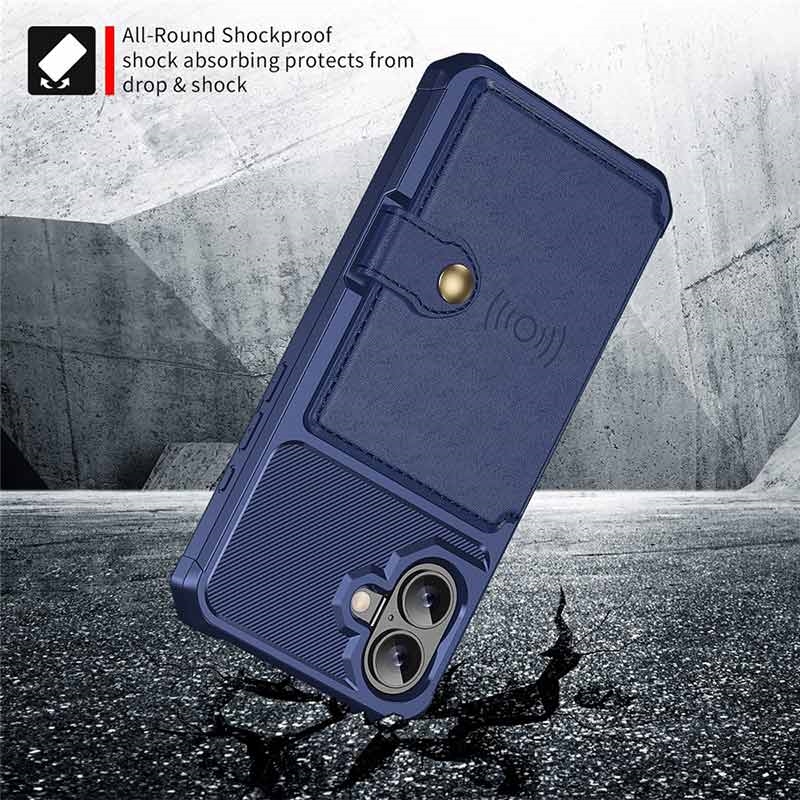 - iPhone 17 portemonnee-hoesje heeft een veilige drukknoopsluiting, portemonnee-ontwerp en verschillende kaartsleuven met geldvak