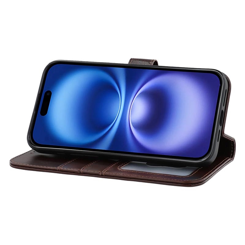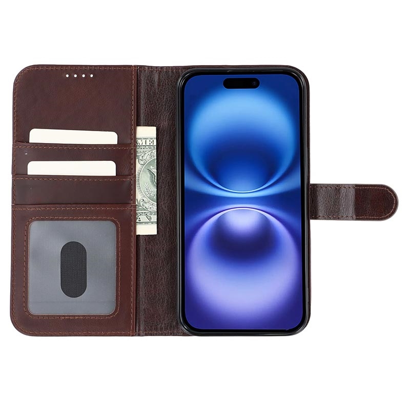 iPhone 17e MyTPhone CardMate Leren Portemonnee Hoesje - Donkerbruin