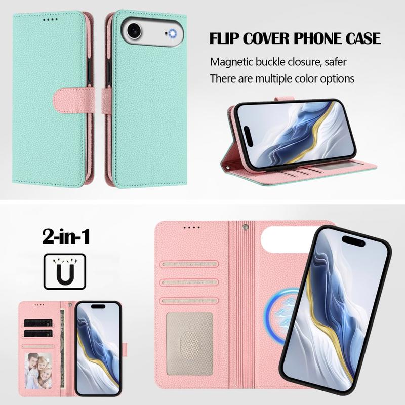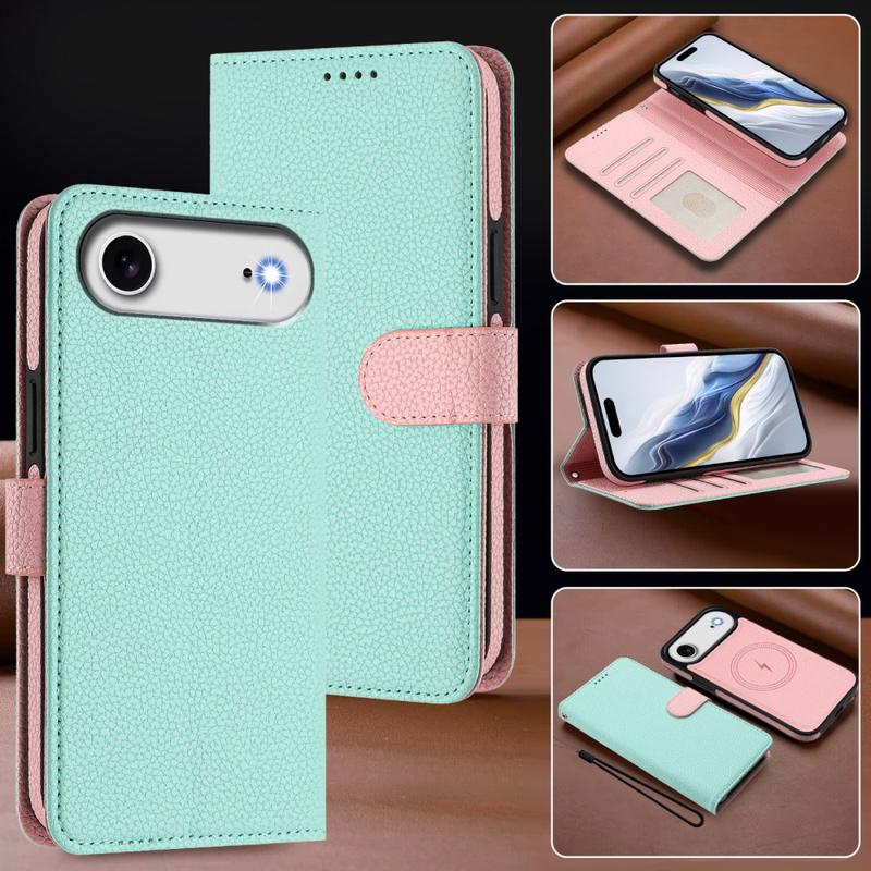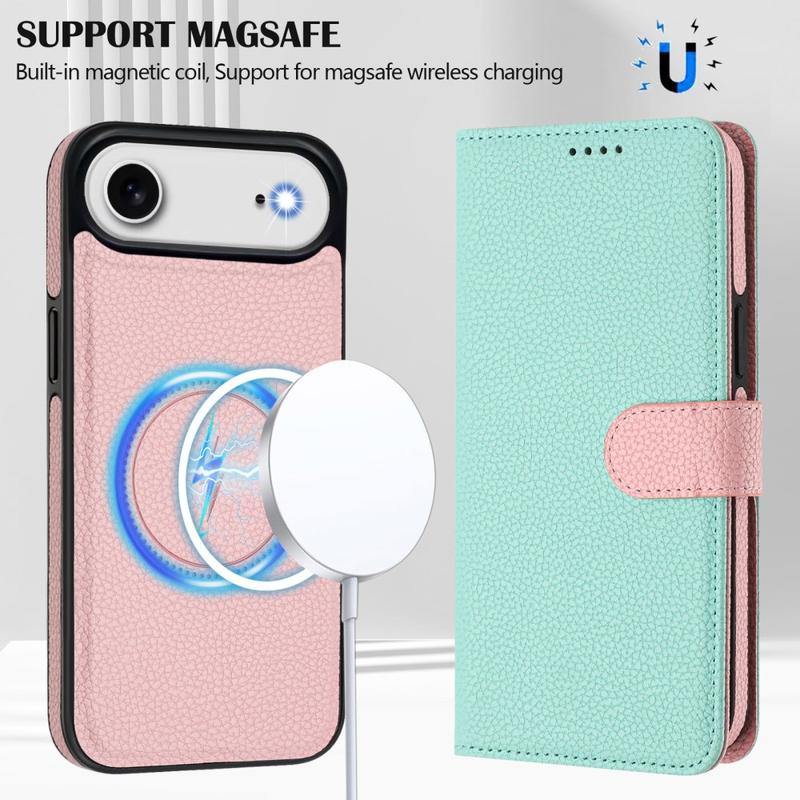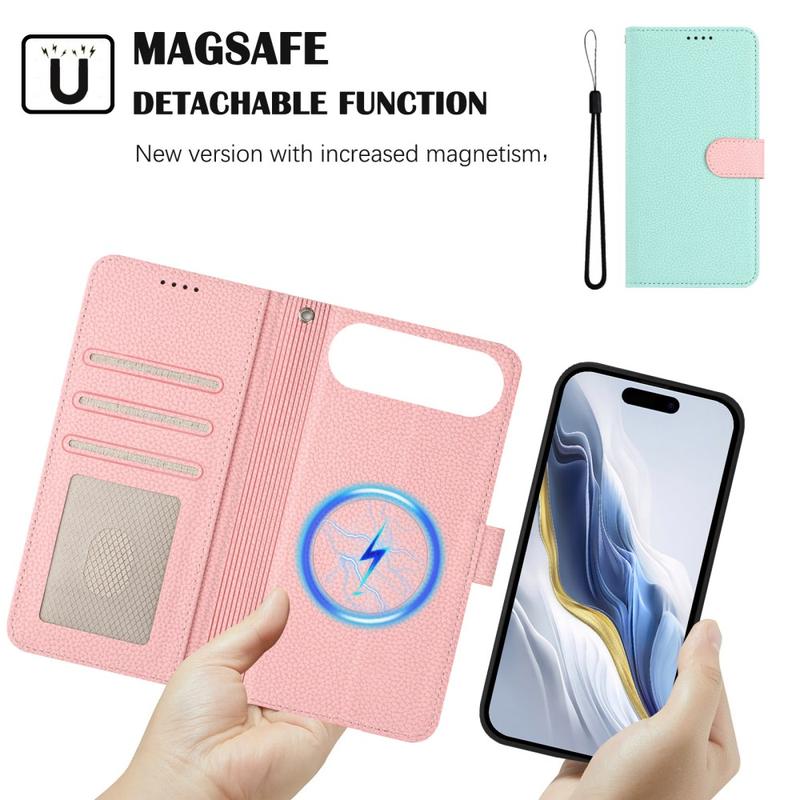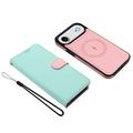 iPhone Air Afneembare Portemonnee Hoesje met MagSafe, RFID-bescherming en handriem - Mint / Roze