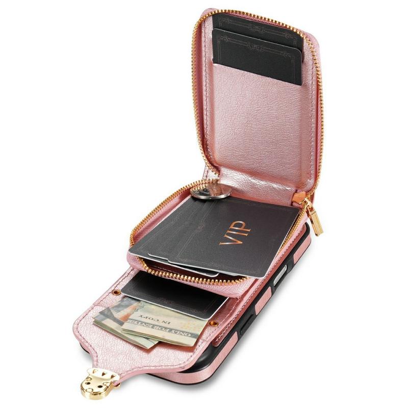 Ideaal voor op reis, winkelen, woon-werkverkeer of avondjes uit, deze hoes doet ook dienst als veilige mini-portemonnee. Houd je essentials bij de hand zonder dat je een aparte tas nodig hebt.