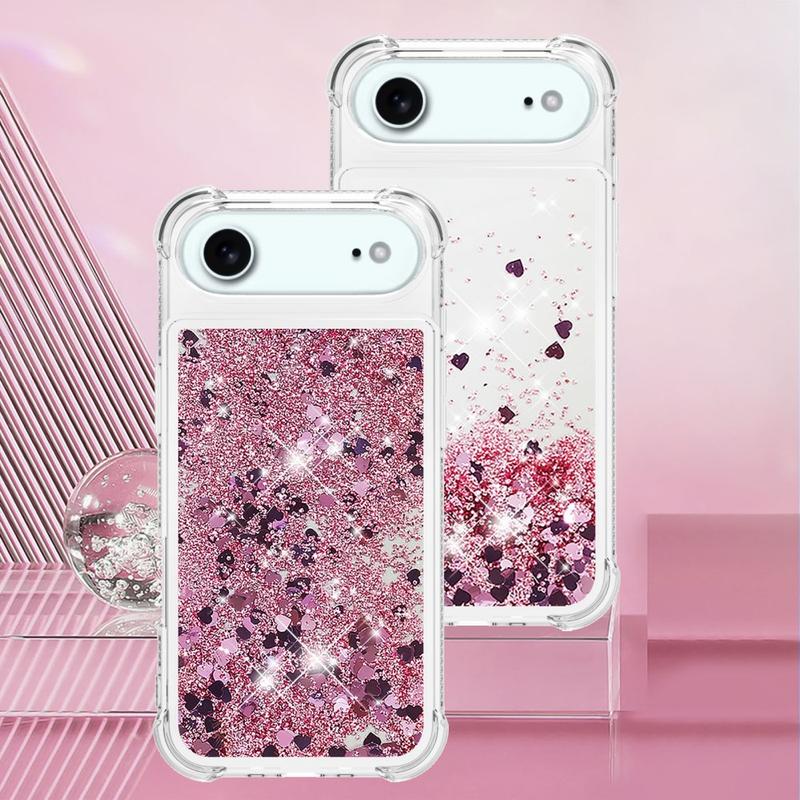 iPhone Air Glitter Quicksand TPU Hoesje - Roze gouden harten