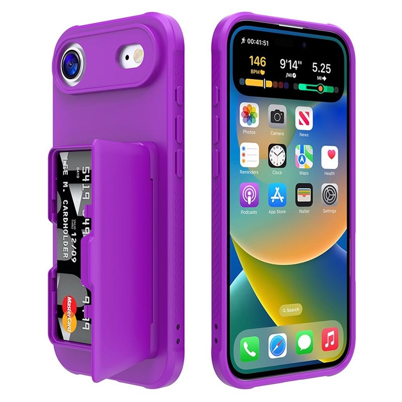 iPhone Air Hybride Hoesje met Verborgen Spiegel & Kaartsleuf - Paars
