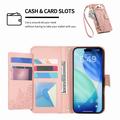 Portemonnee Hoesje met bloemen en bladmotief met Ritszakje & Polsbandje voor iPhone Air