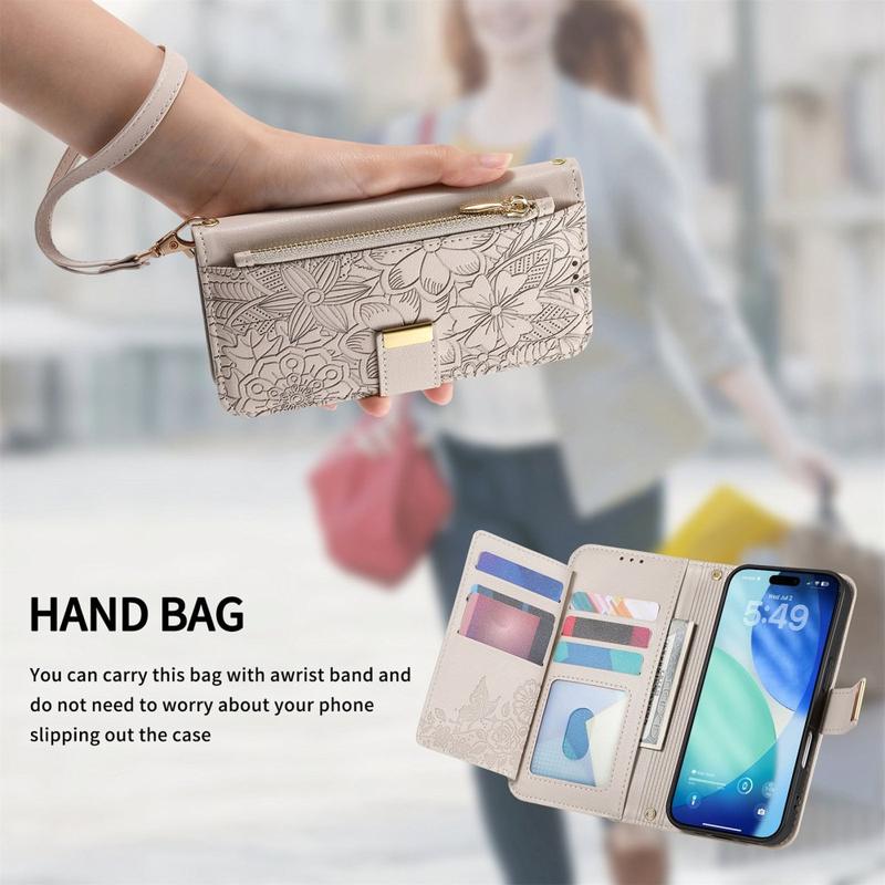 Houd je essentials georganiseerd terwijl je elegantie toevoegt aan je iPhone Air met deze portemonneehoes met bloemenbladmotief. Ontworpen met meerdere kaartsleuven, een veilig ritsvak en een afneembare polsband, is het de perfecte mix van functionaliteit en stijl. Hij is gemaakt van duurzaam TPU en polyurethaan, biedt betrouwbare bescherming en is tegelijkertijd een modieuze alles-in-één portemonnee.