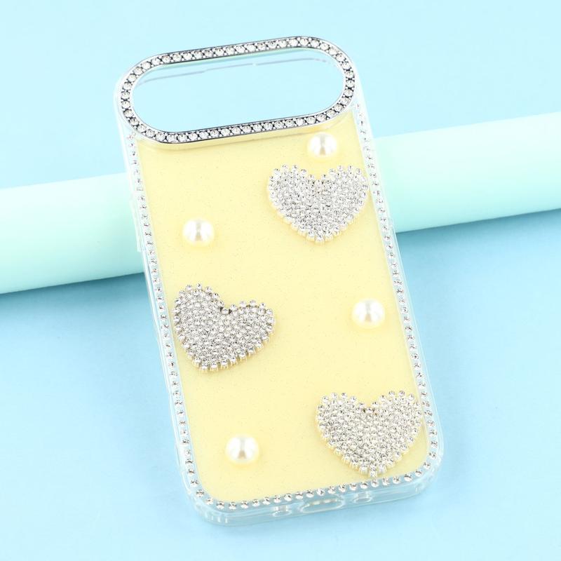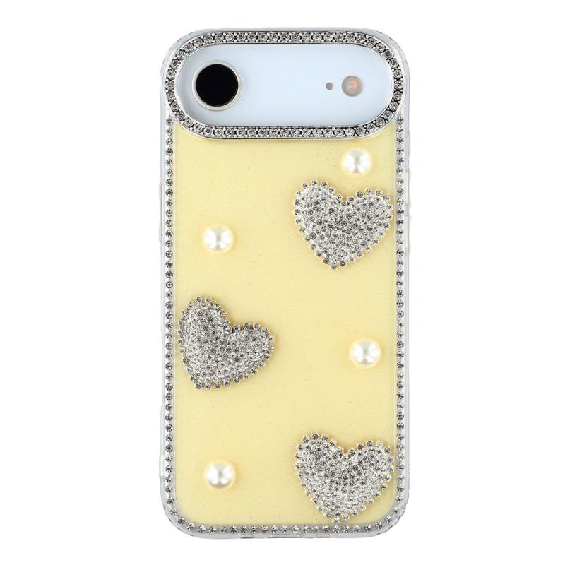Deze iPhone Air hoes combineert betrouwbare dagelijkse bescherming met glamoureuze stijl. Met glinsterende strass-steentjes rond de randen en fonkelende parelmoeren hartversieringen op de achterkant, verandert het je iPhone Air in een modieus accessoire terwijl het veilig blijft tegen krassen en stoten.