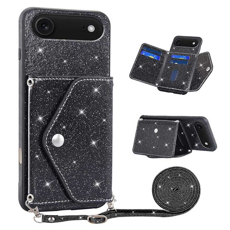 De hoogwaardige hoes uit de Stardust-serie is de juiste keuze om je iPhone Air te beschermen tegen mogelijke schade. Het heeft een kaarthouder aan de achterkant met een drukknoop die geweldig is om je essentiële kaarten op te bergen en ze veilig te houden. Een glanzend glitteroppervlak voegt een vleugje glamour toe aan je telefoon. Daarnaast wordt de hoes geleverd met een schouderriem van 150 cm, zodat je je iPhone Air overal mee naartoe kunt nemen.