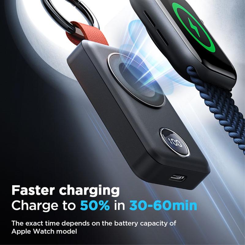 Houd uw Apple Watch overal opgeladen met de Joyroom JR-WQW01 draagbare draadloze horlogelader. Deze compacte powerbank van 2000mAh is ontworpen als een sleutelhanger-vriendelijke lader met een duidelijk digitaal batterijdisplay, zodat u altijd weet hoeveel stroom er nog over is. Met automatische detectie en plug-and-play-gebruik begint hij snel met opladen zonder ingewikkelde instellingen, waardoor hij perfect is voor reizen, werkdagen en noodopladingen.