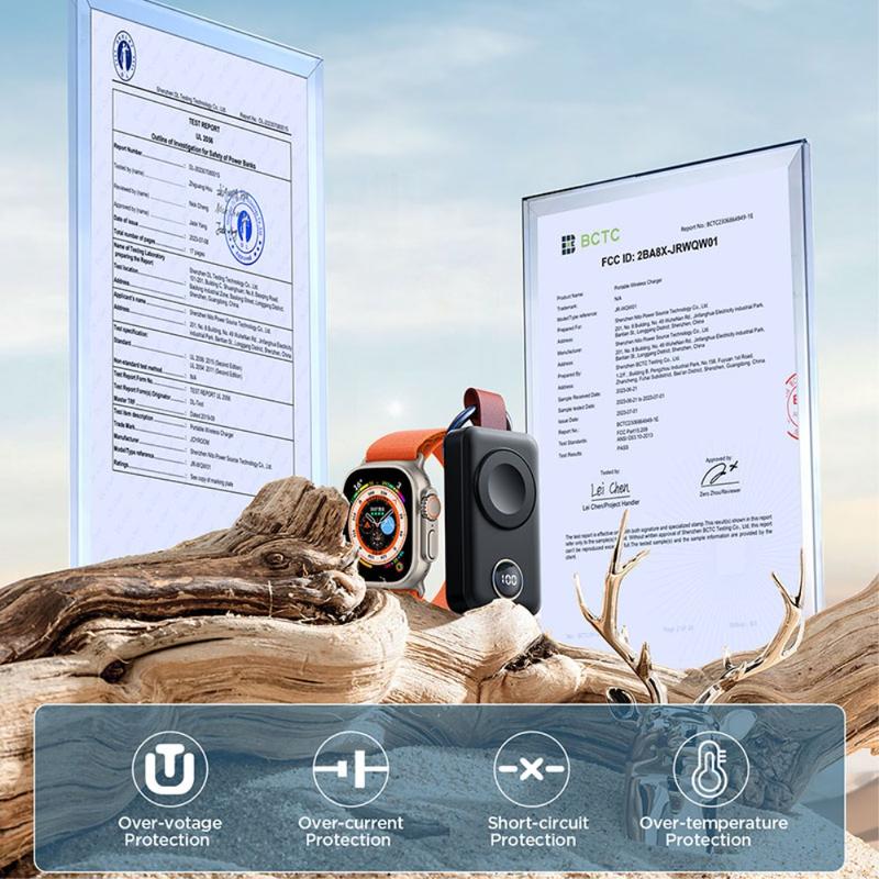 - Draagbare draadloze oplader en powerbank voor Apple Watch