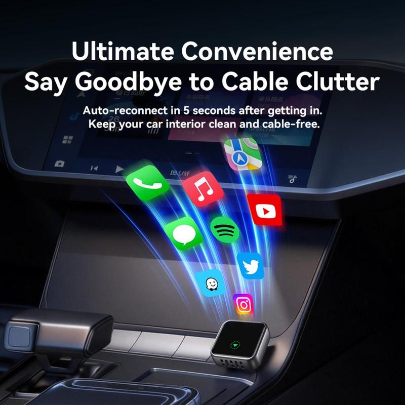 - 2-in-1-adapter die draadloze Apple CarPlay en draadloze Android Auto ondersteunt