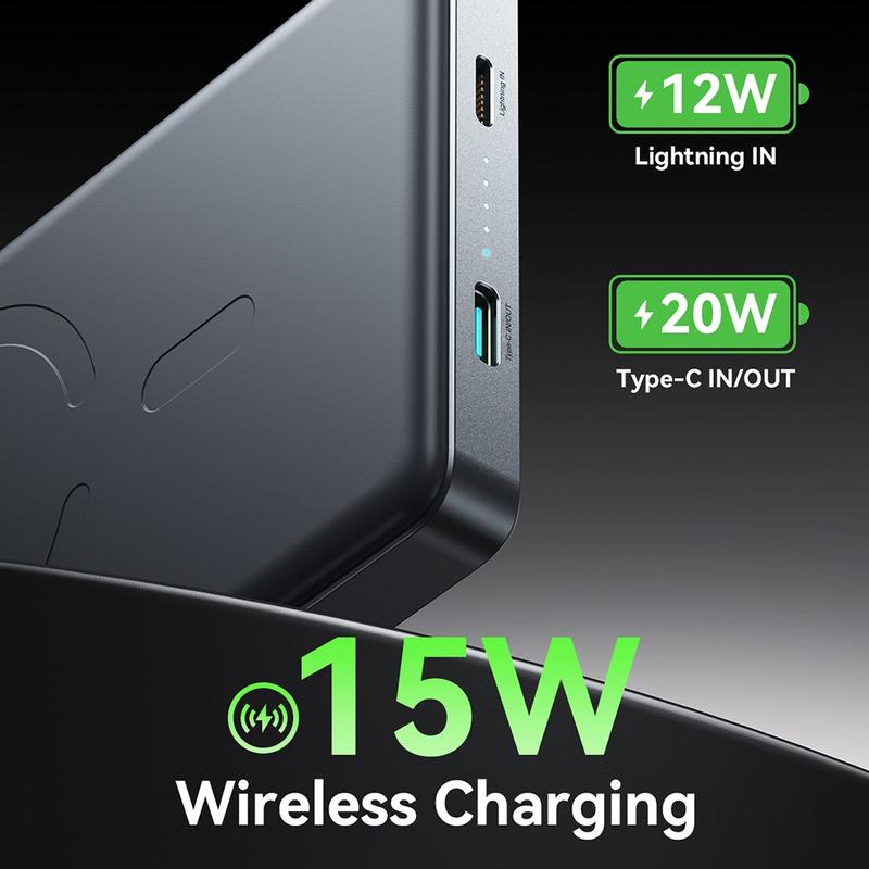 - Dubbele ingangspoorten: USB-C en Lightning voor flexibel opladen