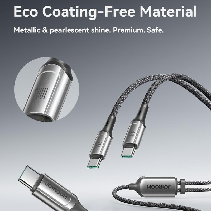 Joyroom S-A57 USB-C naar dubbele USB-C kabel - 100W snel opladen met e-marker, 480 Mbps datasynchronisatie, gevlochten nylon, kabelbinder inbegrepen