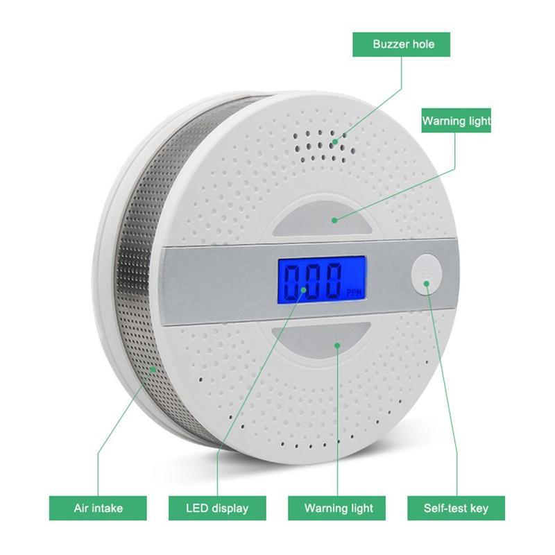 JSN-JY-909COM Koolmonoxide- en rookdetector - Koolmonoxidemelder op batterijen met LCD-display en dubbele sensoren