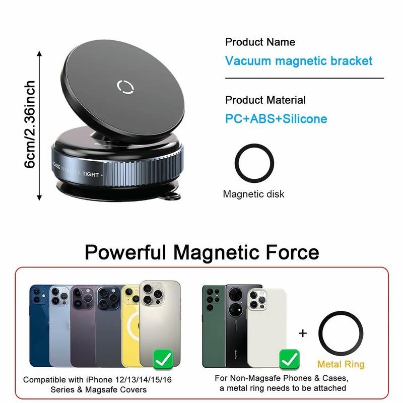 K009 Compacte Magnetische Auto Telefoonhouder - 360° Roterende Mechanische Vacuüm Zuignap Houder voor Dashboard & Voorruit
