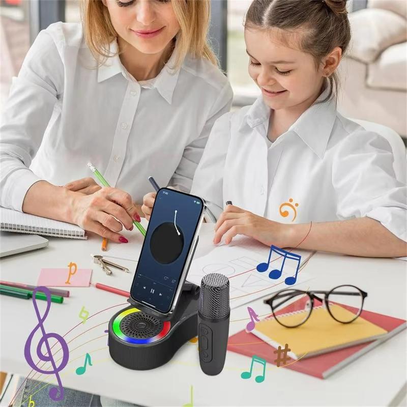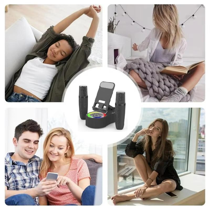 K500 Roterende Telefoonstandaard met Bluetooth 5.3 Luidspreker & 2 Draadloze Karaoke Microfoons