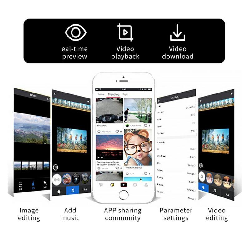 - WiFi: 2,4 GHz (802.11b/g/n) voor realtime preview en afspelen op iOS/Android