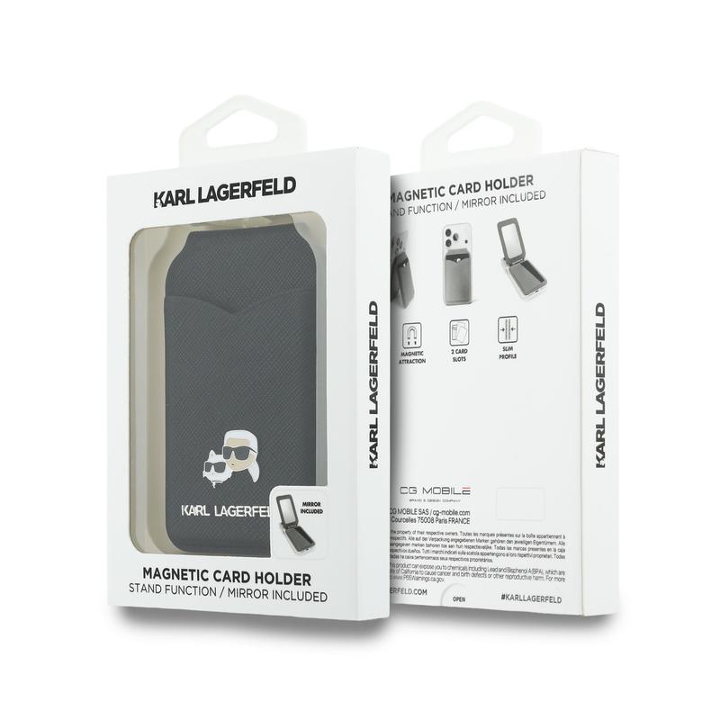 Karl Lagerfeld Karl & Choupette magnetische kaarthouder met standaard en spiegel - MagSafe-portemonnee met ingebouwde spiegel, kaartsleuf en standaard